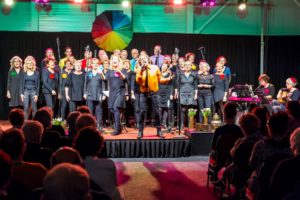 • De bandleden met onze dirigent Marian de Waal